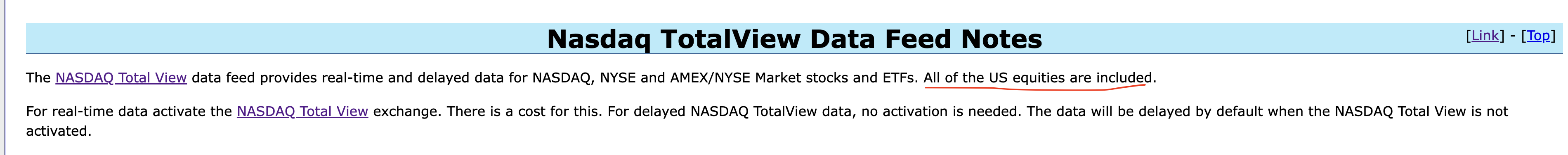 If i activate "NASDAQ TotalView US stock data", do i get all the stocks i previously had access to from "US Equities Consolidated Tape" or do i need both? It sayson "NASDAQ TotalView US stock data" that all US equities are included.