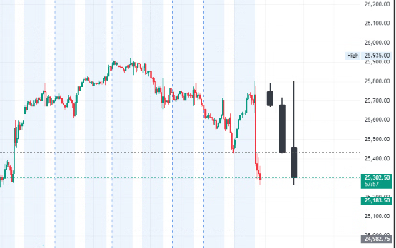 Hi John, attached is a screenshot of what I want to accomplish. The main chart has a lower TF or any other type of chart (range, volume..etc..), and the overlay candles are D1 candles fr the last N=3 days, drawn larger so the formations of the candles are standing out. Date Time Of Last Edit: 2026-01-02 19:06:26