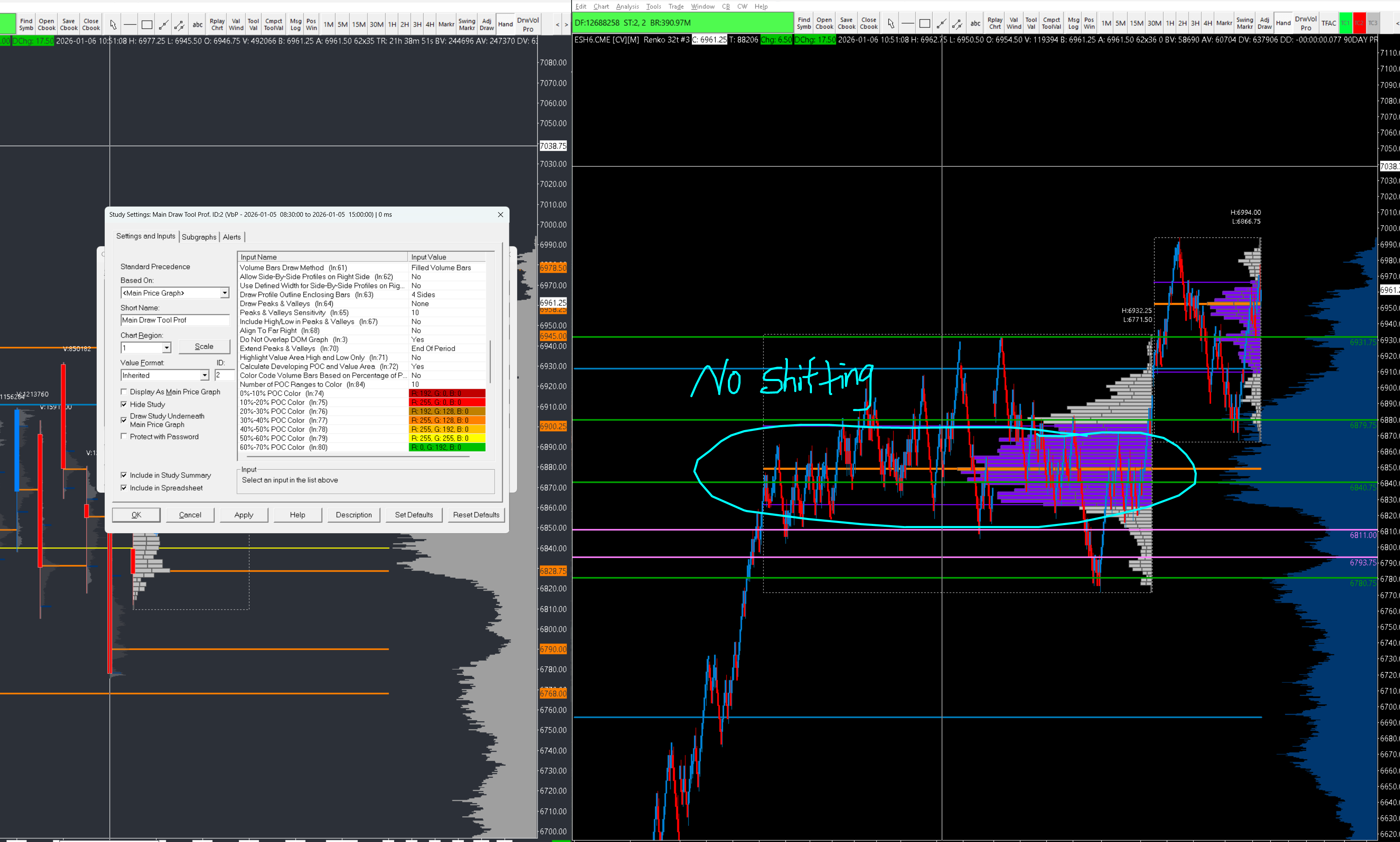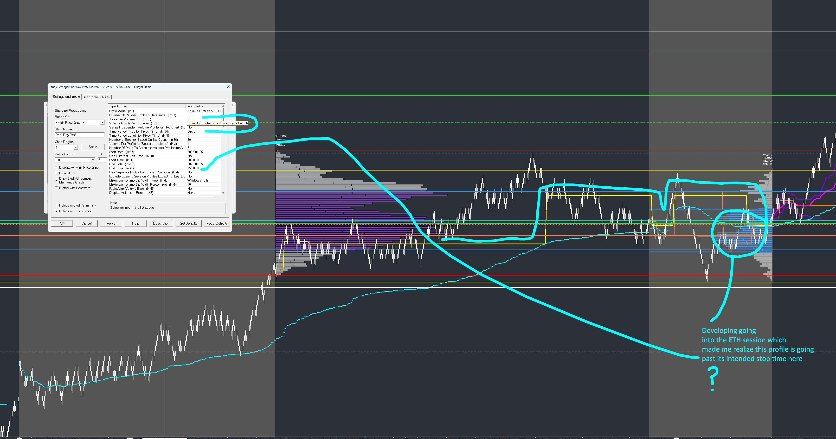 Uh so that image is what I would like to see. But its not happening on anything except my current on going NY session profile. I want to be about to see the vpoc shifts on prior day and draw vol tool profiles that I draw around consolidations. Heres an image on my sierra chart