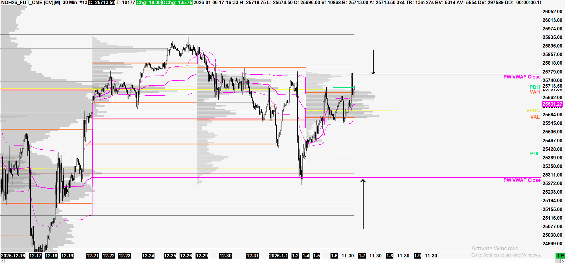 Hello guys, I am sorry if this has been explained before but I cannot seem to find the function Iw ant. I have a chart that shows weekly volume profiles and VWAP. I would like my chart to label where the previous weekly VWAP's closed automatcally. Is this possible? So far I cannot seem to fund any function that allows me to do this. Currently relying on manual mark ups. Any help would be greatly appreciated. Example shows arrows with manual mark ups of previous week VWAP Closes Thank you |