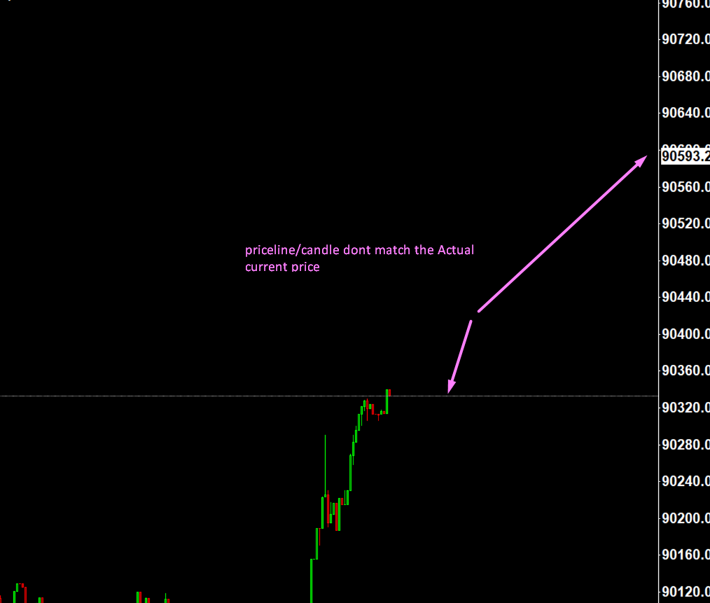 I have a follow up question on the SC data this time. So, I like to sim trade when I can with your delayed data feed. I'm experiencing a very weird issue. I'm only able to trade binance btc data from the SC Example Chartbook Saturday mornings. After 12 or 1pm PST, the price/candle on the chart does not match the price seen on the y axis . I'll attach screen shots to better explain. I've found that Im actually pretty good trading the btc/binance from the example chart and would love to explore it more, but so far only limited to trade it saturday morning. Any idea why that is? |