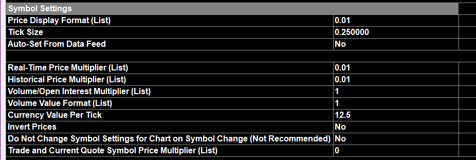 The setting for "Price Display Format" is what drives this. In your image, this is showing as 0.01, so you should not have a fractional value showing for the values on the TPO. We need to see an image of the entire chart by following these instructions: Support Board Posting Information: Attaching or Posting a Screenshot/Image (Optional) For the most reliable, advanced, and zero cost futures order routing, use the Teton service: Sierra Chart Teton Futures Order Routing |