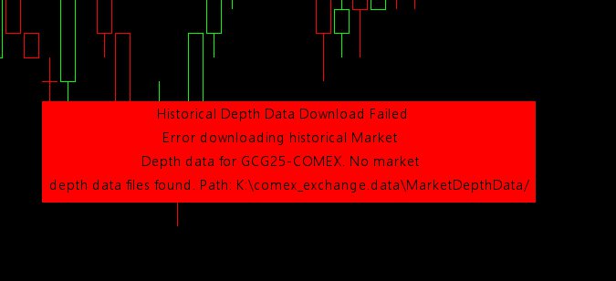 Thank you for this further clarification. I tried to test this but so far failed. Specifically, I did the following: - Load a chart with ESH25 for the first two weeks of Jan 2025 using the "use date range" option in Chart Settings. This of course is a date range when ESH25 was actively traded. - The chart loads as expected, a popup that the contract is expired comes up (which is entirely correct) - Then a red message quickly pops up that the download of depth data failed as no depth data is available. I have attached a screenshot to illustrate the message. - I tried the same exercise using the Teton feed and using the SCData feed. I thought that, maybe, this does not work with Teton as the contract of course is expired and does not trade. However, I got the same result also with the SCData feed. - I then repeated the same test using the Feb 2025 gold contract (GCG25) and again got error messages indicating that no depth data is available. I also attached a screenshot. Could you please clarify what is going on and provide guidance how I can get depth data for these expired contracts? To be clear, I do not try to load a continuous contract, I use the single expired contract symbol in Chart Settings. |