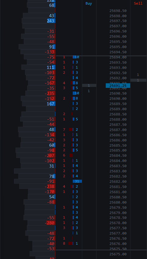 I have a DOM with a two tick compression that has recent bid and recent ask columns next to each other however there is the background colour above and below each row, i want this to be continuous with the row above/below how can i do this? the studies on the lefthand side are vbp volume and delta with ticks per volume bar set to 2, their text font size is set to 10, removing them makes no difference Thanks! https://www.sierrachart.com/image.php?Image=1768654392664.png |