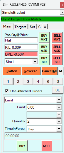 You have your order setup as a Limit order with a price of 0.00. As such, when you select the Buy button, it is putting in a Limit order at 0.00, which will never occur (but the order is probably being placed, so you need to check the Trade >> Trade Orders window. When you select Sell, in this case, the current price is better than a price of 0.00, therefore the Limit fills at the current market price. For the most reliable, advanced, and zero cost futures order routing, use the Teton service: Sierra Chart Teton Futures Order Routing |