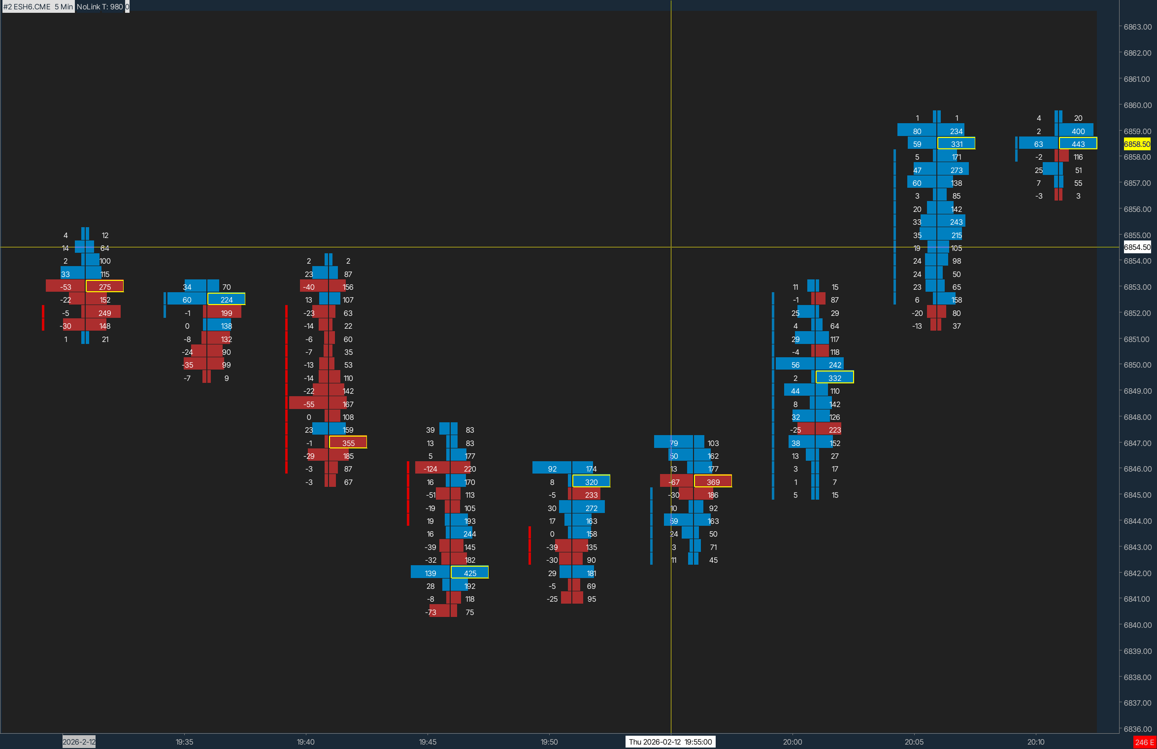 Numbers Bars – Need solid single-color delta column + volume column + thin body marker (MotiveWave-style footprint) I am using Numbers Bars (Rev 54254, 64-bit, Version 2800) I am trying to configure a two-column footprint: Column 1 (left): Delta (Ask-Bid or Diagonal Delta) Column 2 (right): Total Volume Requirements: • Each price level background must be a single solid color based on delta (not bid/ask split, not gradients, no gray neutrals) • Horizontal profile bars must be wider (similar to MotiveWave footprint style) • Only a thin candle body indicator on the left side (no wicks) • POC outline should not be compressed or clipped I am encountering the following issues: • Column coloring remains mixed (blue/pink/gray) even when using “Based on AskVol/BidVol Difference” • Many documented inputs (marker styles, wick suppression, profile width controls) are not present in my Numbers Bars dialog • Graph Draw Type = Candle Body Only does not suppress wick artifacts Is there a recommended Numbers Bars configuration for achieving a MotiveWave-style footprint layout, or a required chart draw mode that prevents column override conflicts? https://www.sierrachart.com/image.php?Image=1769205770107.png |