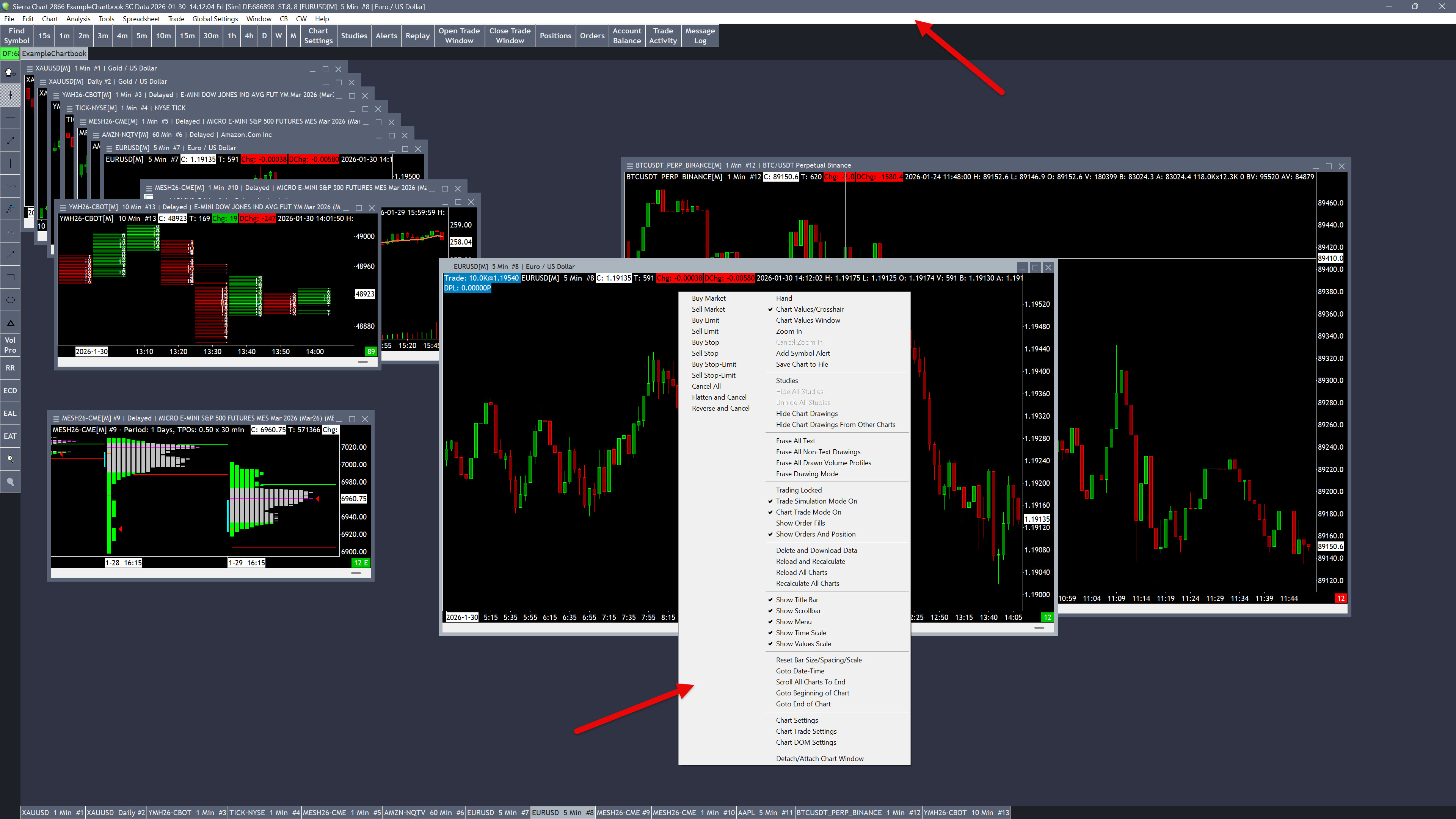 I have read that the appearance of some elements in Sierra Chart cannot yet be changed directly in the platform, but this can be bypassed by using Windows themes. I am trying to create a dark theme for Sierra Chart. However, when I select dark mode in Windows 11, it has no effect. I am attaching a screenshot where you can clearly see that neither the menu bar nor the Chart Shortcut Menu changes. However, I have seen that some users have these elements in dark mode. How can I achieve this? Thank you. |