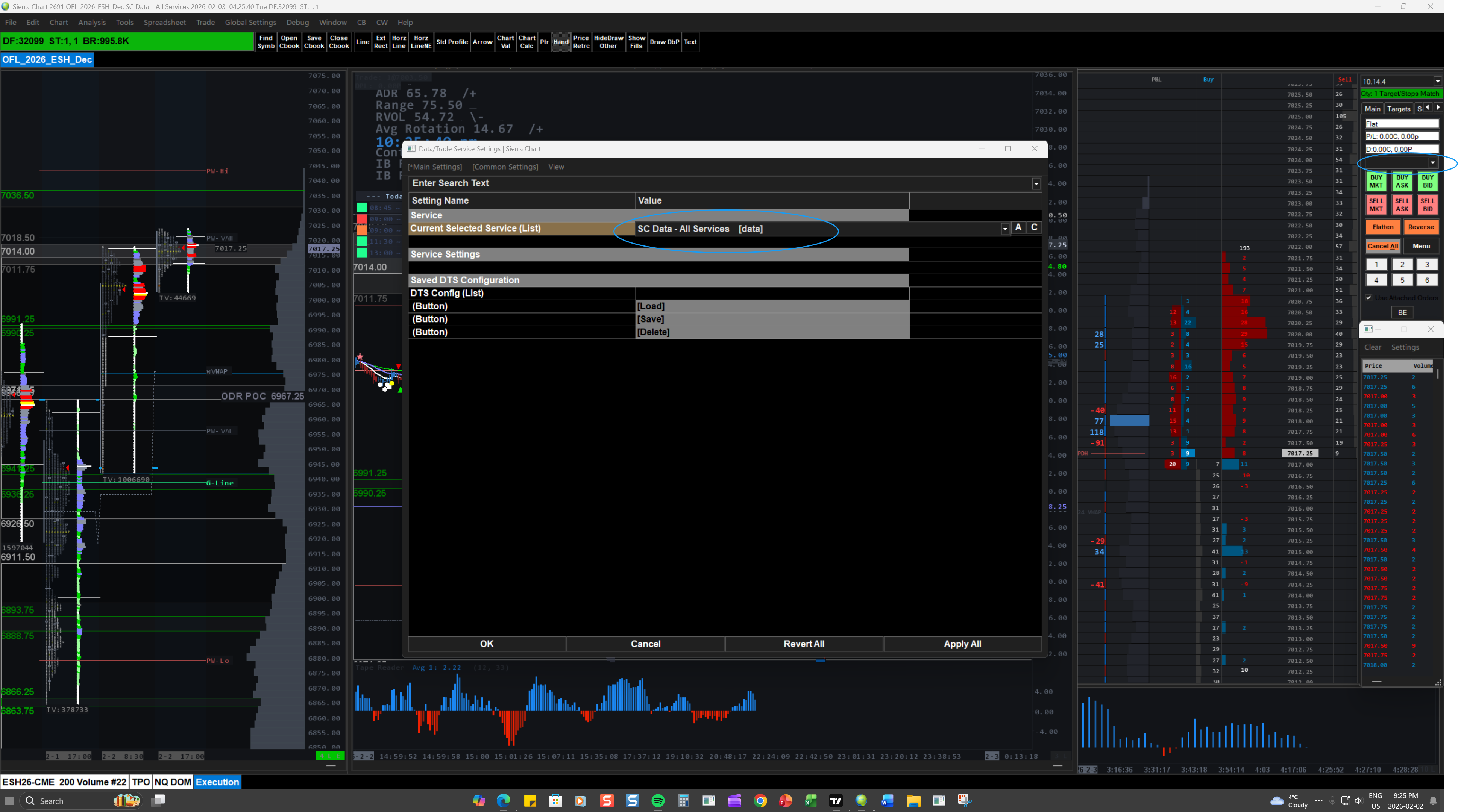 Yes. Refer to: Denali Exchange Data Feed: Integration with Trading Services Sierra Chart Support - Engineering Level Your definitive source for support. Other responses are from users. Try to keep your questions brief and to the point. Be aware of support policy: https://www.sierrachart.com/index.php?l=PostingInformation.php#GeneralInformation For the most reliable, advanced, and zero cost futures order routing, use the Teton service: Sierra Chart Teton Futures Order Routing |