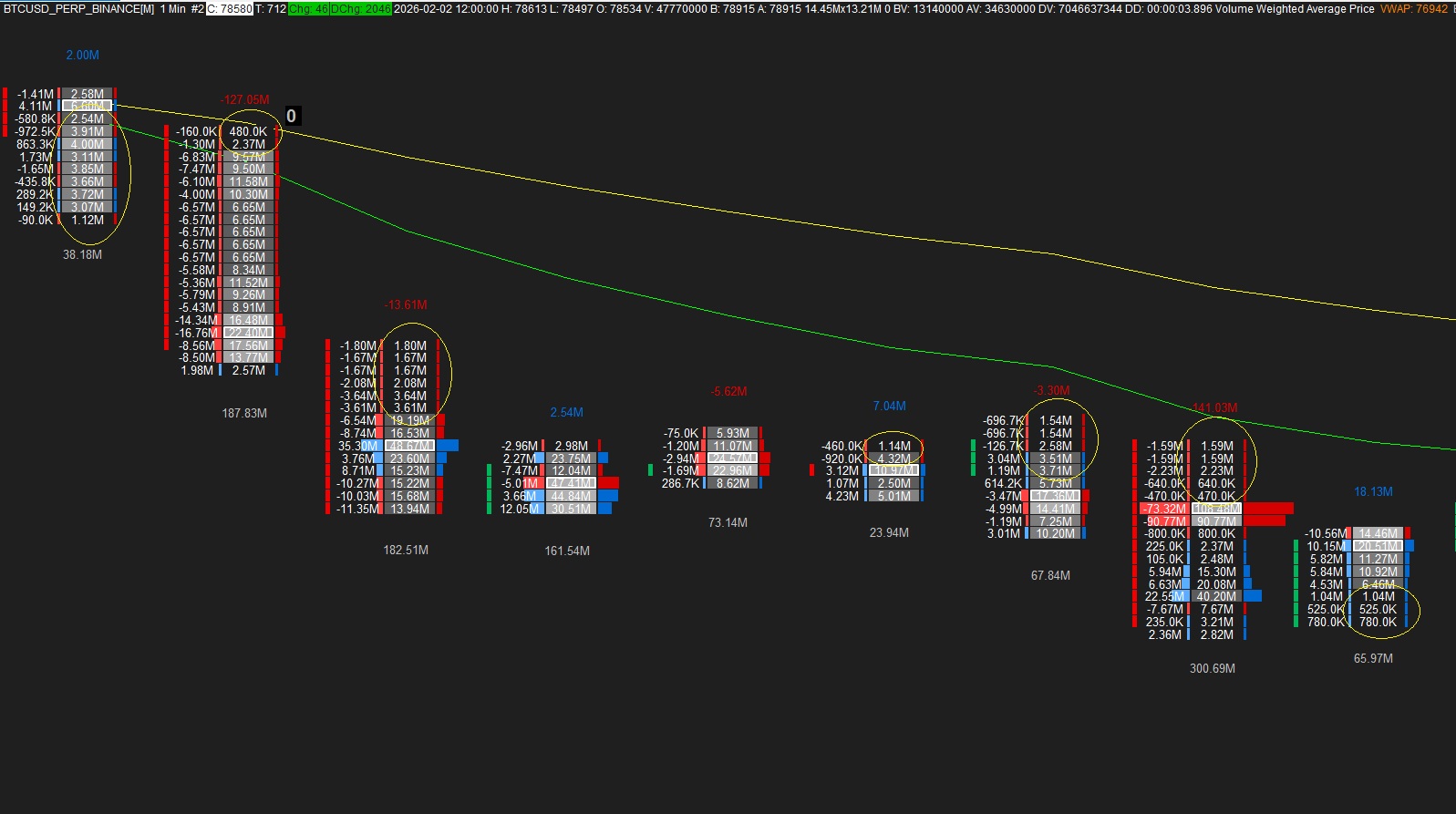 Hi, I am trying to filter my BTCUSD_PERP_BINANCE footprint chart to have a minimum order, but I am not having luck. I have tried various settings in the Number Bars studies area, and also in the Global Settings for the symbol, but nothing is adjusting my chart. If you see attached, I am wanting to set a 5,000,000 filter so all orders under this (for example those in the yellow circles in the attached) do not show on my chart. If someone could please help me locate this setting, I can then tinker with it to get it set to the value needed. Also, maybe a simpler question, is there a way to remove the decimals from these values on my footprint chart, so that 5.30M, -127.05M, 411.03M, etc. are simply 5M, 127M, 411M? Thank you in advance for your time and response! |