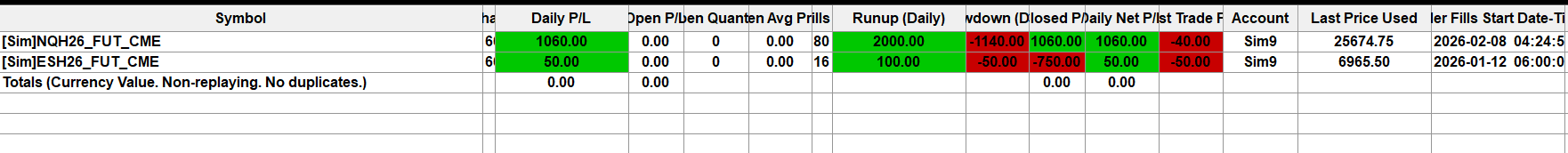 Hi, I'm submitting orders for multiple symbols from a single chart. The chart for the 2nd symbol is open in the Chartbook. Per the documentation, I am connected to the datafeed during the replay as the 2nd symbol's orders do no use the replay data. However, I've noticed that orders for the 2nd symbol are not being filled despite the price oscillating around the order. I've also noticed that the 2nd symbol's orders are not appearing in the TAL under the Trades tab but PnL is available for both symbols in the Chart Stats tab. I've noticed that the Entry Time in the Trade Orders Window for the 2nd symbol is the current datetime vs the replay datetime which I assume is to be expected given that the 2nd symbol does not use replay data. I'm using sc.AddMessageToLog but the Message Log is not updating. I do not have Disable Visible Message Logging enabled. However, I added sc.SetAlert with the same string as a test and alerts are being added to the Alert Manager. I'm running tests over the weekend thus there is no live market data. Is the behavior I'm experiencing a result of needing to be connected to the live feed but doing so when the market is closed? How can I receive trades and stats for both symbols in the TAL and ensure fills in the 2nd symbol when the price is crossed? I slowed the replay down multiple times but this behavior still persists. Thanks. |