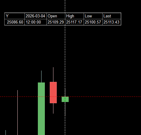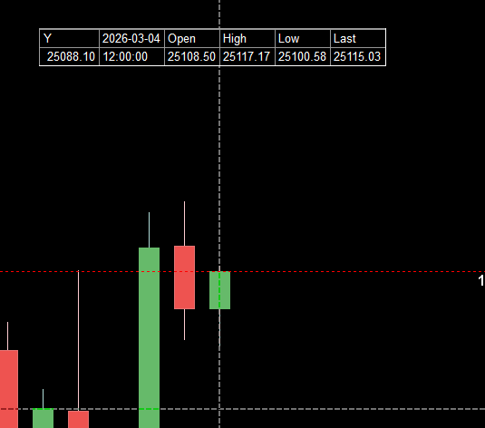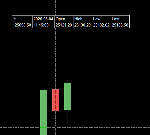 Check the open price of the newest green candle where my cursor is (before and after) and check the last price of the red candle