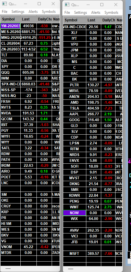 I am using SC 2882 version with denali data. I usually use TWS but had so much missing data so I switched to denali thinking it must be the TWS but I closed TWS and now the same symbols are missing and not updating at all so its safe to assume its not TWS? I have a screen of the randomly missing symbols thank you