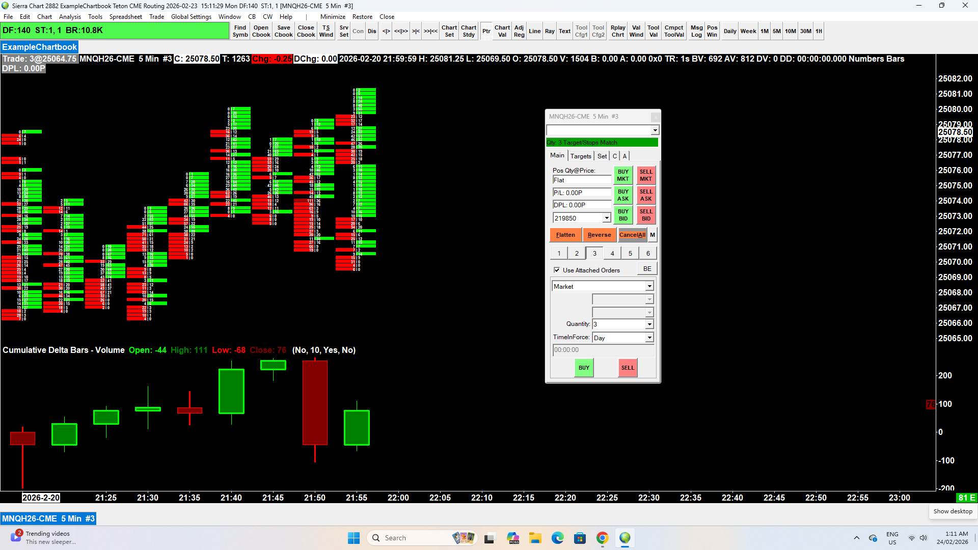 hello my chart is not updating but trade data is moving symbol MNQH26-CME 5 minute chart using teton CME routing the trade number in top left (eample3@25064.75 ) keeps changing but chart bars do not move no new candles price scale frozen delta not updating so data is coming but chart is frozen please advise please confirm if this could be realated to chart update interval data feed settings or service connection thank you