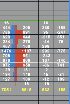 Maybe I'm explaining myself poorly, I apologize. Look at the attached image, the last column on the right, which is "current traded ask minus bid volume." I'd like the background of the negative numbers to be red, while the background of the positive numbers is blue. Right now, it's all gray.
