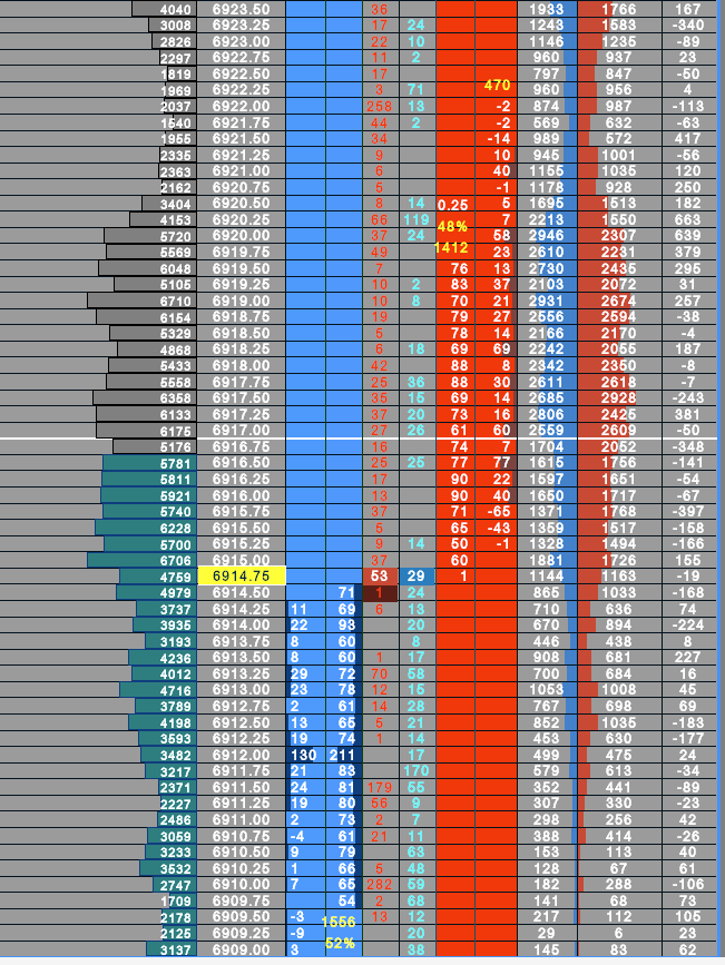 Good morning, I need to apply the last column you see on the right of the photo (I think it's the delta) to my DOM. It's the bid minus ask orders. If I go to the settings to add columns to the DOM, I can't find it. I only have "current trade ask volume" and "current trade bid volume," which I used to create the split volume profile. The photo shows the second-to-last column from the right. Thanks.