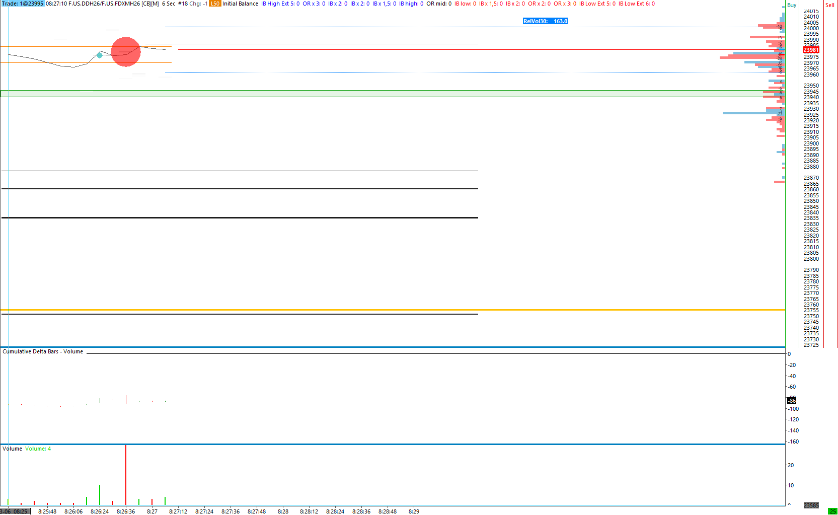 OK, Ic. It is the combination of bar spacing and very small bar period which is only 1-5 secs. indeed it is the same in other charts, only that when the bar period is 5 mins, there is still 2 hours shown where you can drag a volume profile to. but when its only 2 secs only 2 mins remain. and that is what bothers me. in an devoloping balance I need to go to the volume profile settings and just type in some future time, because I can not drag it more than those 2 mins.