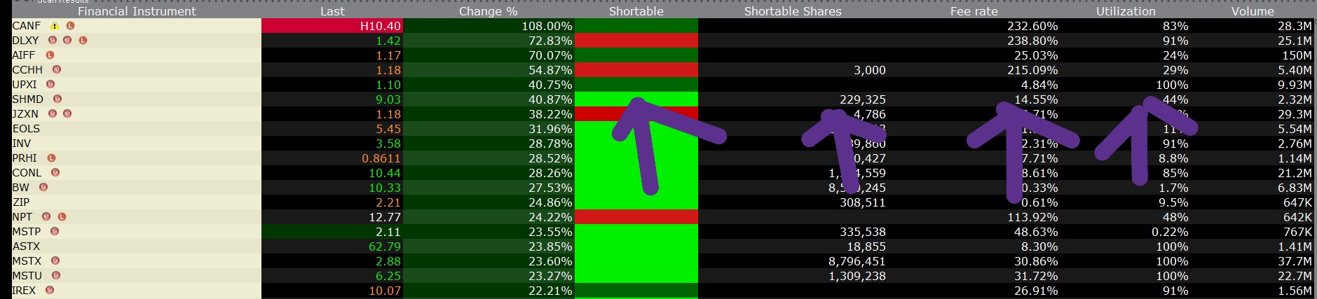 Hi Everyone, I am presently trading US Equities in SC with IB. I want to pull some data from TWS to overlay on my Chart as a stufy. The columns i want to pull are 'Shortable', 'Shortable Shares', 'Fee Rate' & 'Utilization'. [Screenshot Attached]. Since the TWS API is already connected, is there an existing study where i can just tell it what columns to pull for example? Not entirely sure where to start - any tip/clue appreciated. Thanks in advance. https://www.sierrachart.com/Download.php?Folder=SupportBoard&download=134716 |