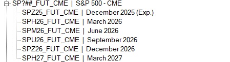 Yes: For example: ESH26_FUT_CME?