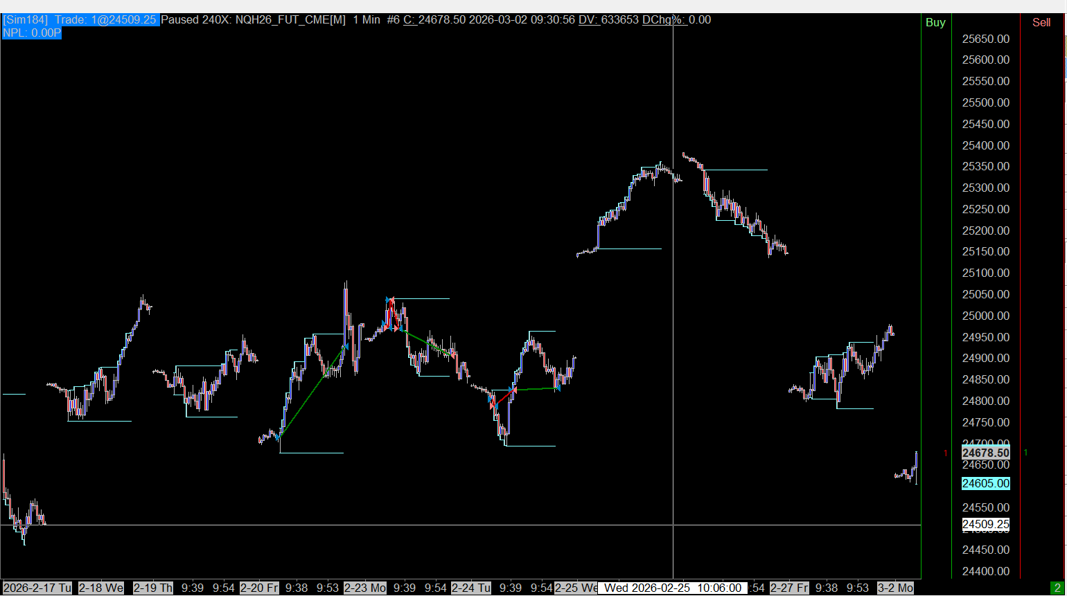 Thanks John. This cannot be related to algo or custom studies. Just created a brand new collection with delivered studies... very simple.. buy on session high, sell on session low. runs fine in replay until 2/24/26 and stops working from 2/25/26 onwards. I also tried with continuous contract and automatic rollover disabled...same issue. I really want to avoid fast update as I have backtests in numerous sim accounts to compare with forward testing results. I am currently on 2870 version. Same result on ESH26 also. It looks like something changed on 2/25. |