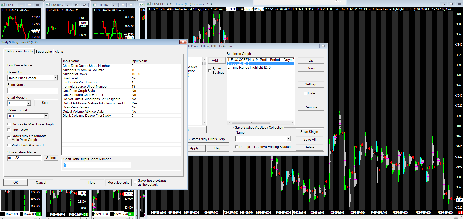 The chart settings say 1 minute but its being used for a profile chart, it works when I use it for other profile charts. I noticed its only the charts that open on Monday rather Sunday that are giving me trouble. The formula works for every market except, Coffee, Coco, sugar, because they all open on Monday ( it seems )