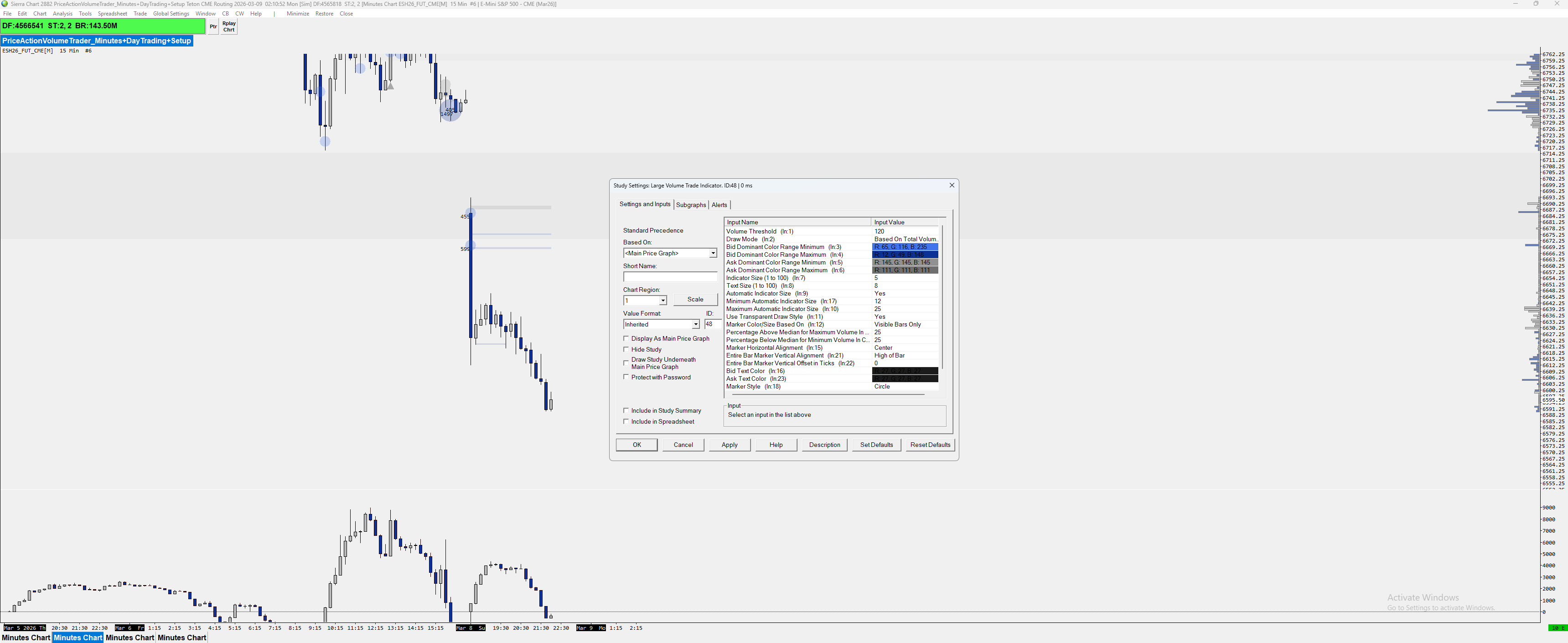 hi, I use you large trade indicator on ES 15min chart and volume value is set to 120, And one on 10 tick range bar chart and value is set to 25. However some trades are shown on range bar chart(Smaller timeframe), but not on M15 chart As if you going to look at around 21:20 on range bar chart, there were 237 contracts executed, while if look on M15 chart, it does not showing that trade although it set to 120 volume threshold |