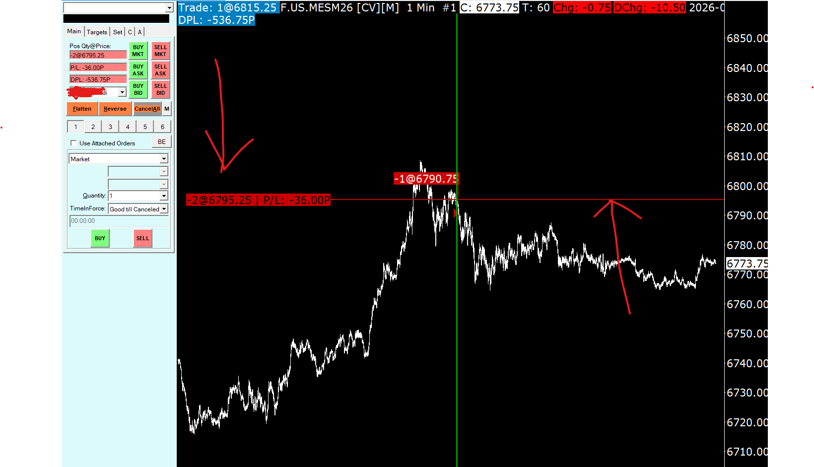 I still see -2 position that was opened under SIM MODE > "CQG ACCOUNT NAME" SIM MODE - not SIM1 etc When I select Trade Simulation Mode On and scroll down to select "MY NAME ACCOUNT" (CQG live account shows my name not a #) then I see -2 open trade and it carries from Mar 17. I can't close it or liquidate it. I can only select not to show it by selecting Chart Settings>Order Fills Start Date> more recent date. But how can I close it or delete it? I checked with CQG and I am flat on the real account but somehow this -2 position keeps showing up on my TAL window along side my actual trades even though it was opened on "ACCOUNT NAME" in SIM MODE. I tried everything. Maybe it was opened on the previous March contract symbol and I can't close it because SC forces me to click Rollover. Thank you. |