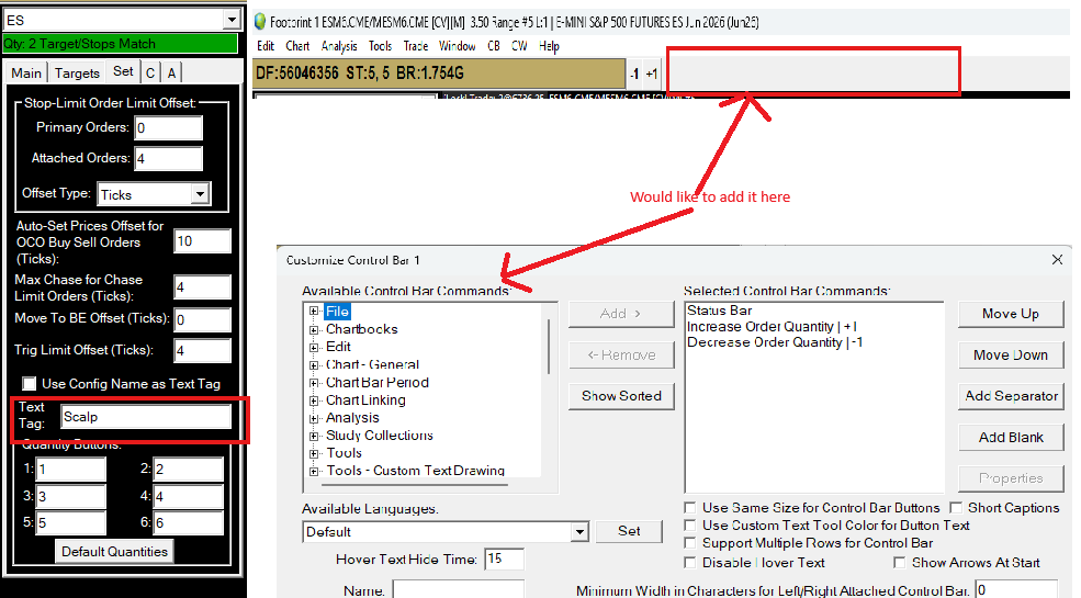 Is there any way to be able to add the "Text Tag:" field from Trade Window>Set tab as one of the Available Control Bar Commands under Global Setting>Customize Control Bar? Would you be open to adding that in the future if not currently supported?