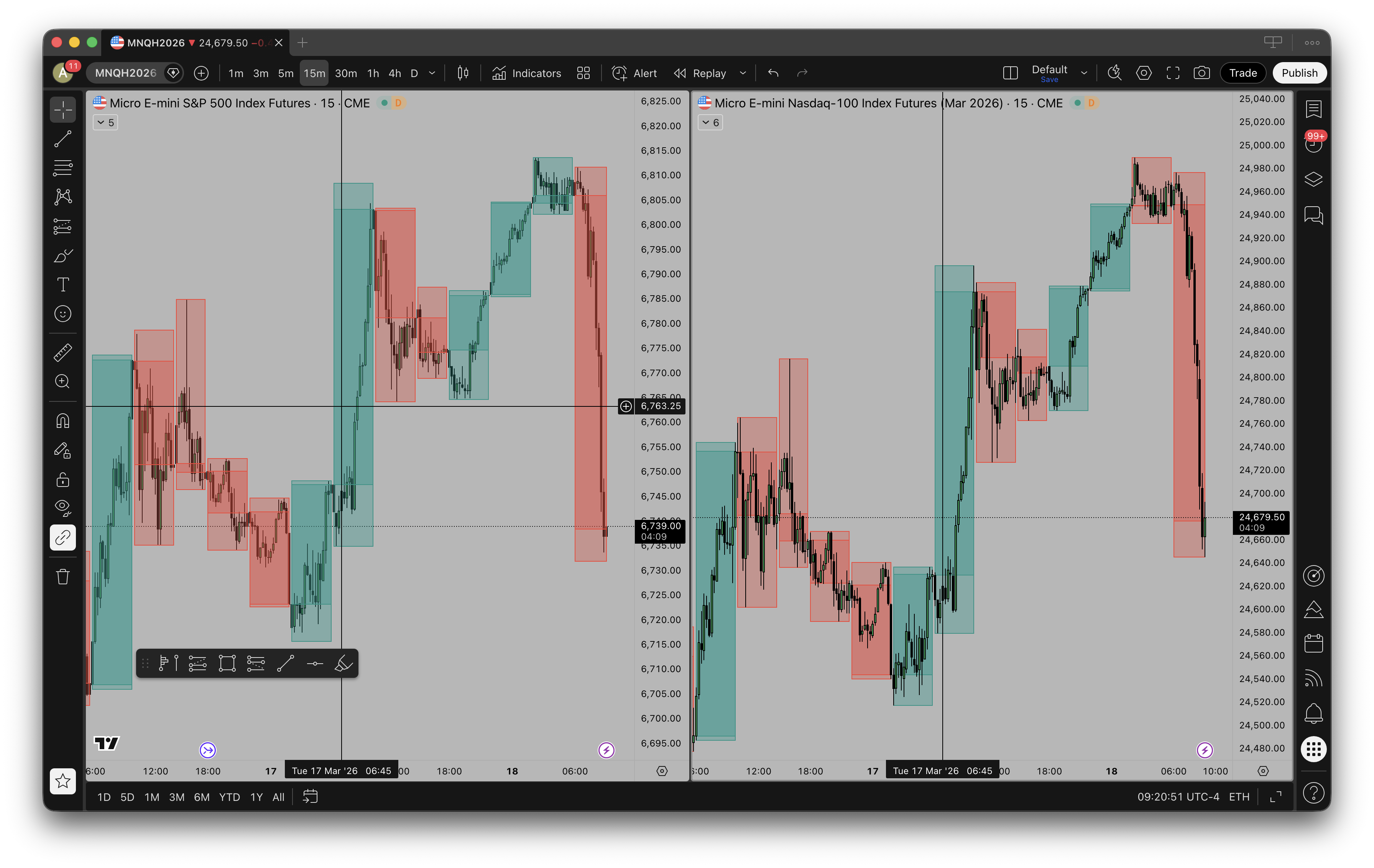Is there a study or a way in sierra chart to have another time frame like a higher time frame lets say H4 displayed in M15 like this? I would like to achieve the same in sierra chart like in tradingview in the attached image. Thanks |