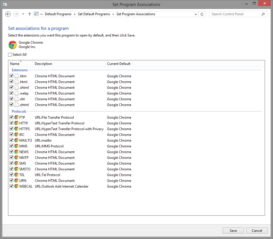 Just checked & re-registered it as the default (win 8) Links from other applications are being opened in chrome. What else can I check?