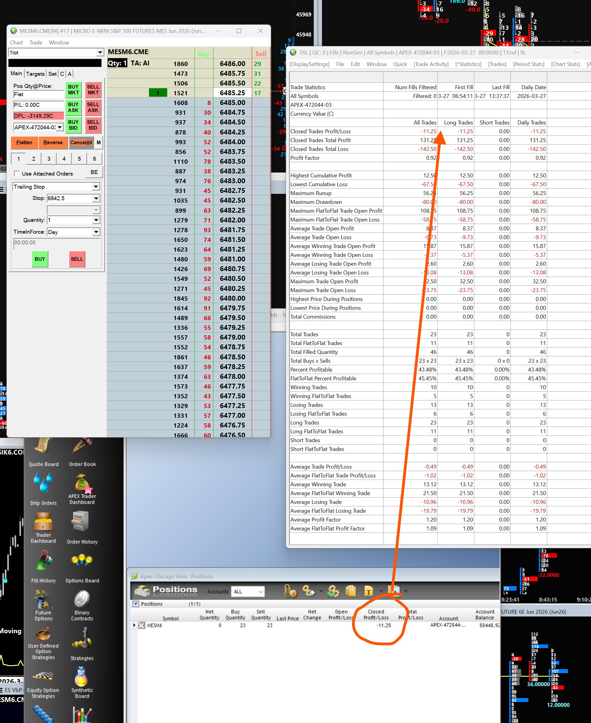 John, This happened yesterday and I thought it would fix itself but it hasn't. The p/l on the MES is mental. You can see from the p/l at Apex I have lost 11 bucks. Your TAL stats confirm it. All the trade activity is correct, but the pl is mental. 1- I have closed dom and created a new one..no good 2- I have restarted SC. no good Now what??? thank you! |