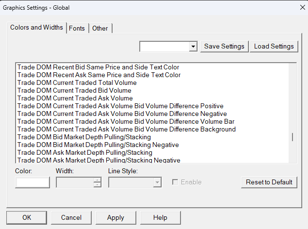 in the general graphic settings, when I go to the "Trade DOM current traded ask volume bid volume difference volume bar" I can only find 1 setting and I can only change the color for the positive delta volume bars. How can I change it also for the negatives?
