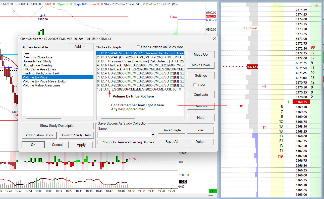 I do not have VbP as a study. Can't remember how I got it on there. In case I want to remove it or show the volume traded on it. Thanks |