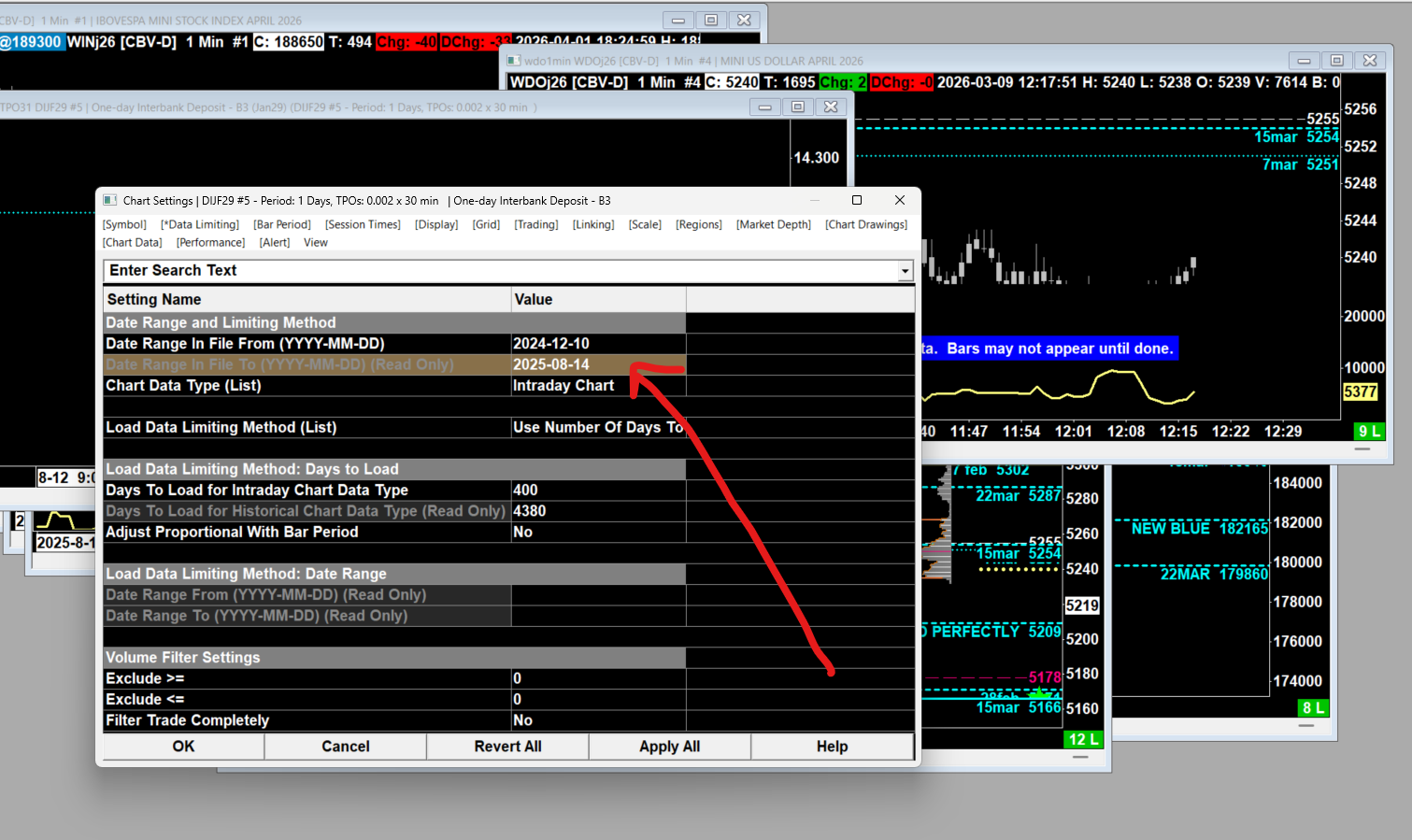 John, I am at my mother's and I downloaded my Brazil chartbook. Everything was working in uk on this laptop, when I open it here in usa 2 of the 4 products are perfect. The other two, the DI contracts, will only download 8 mos from middle of last year!!!! When I go to chart settings you can clearly see it will only download 8 mos in 2025. It will not allow me to change the date range. See how it stays gold, not white, highlighted so it is frozen. I tried both days to load and date range and it is stuck on the 8mos range you see. I have deleted and re downloaded chart book. That doesn't work. The other 2 products are fine, and all four were working in UK before I left on this laptop. HELP as this is my most important product thanks |