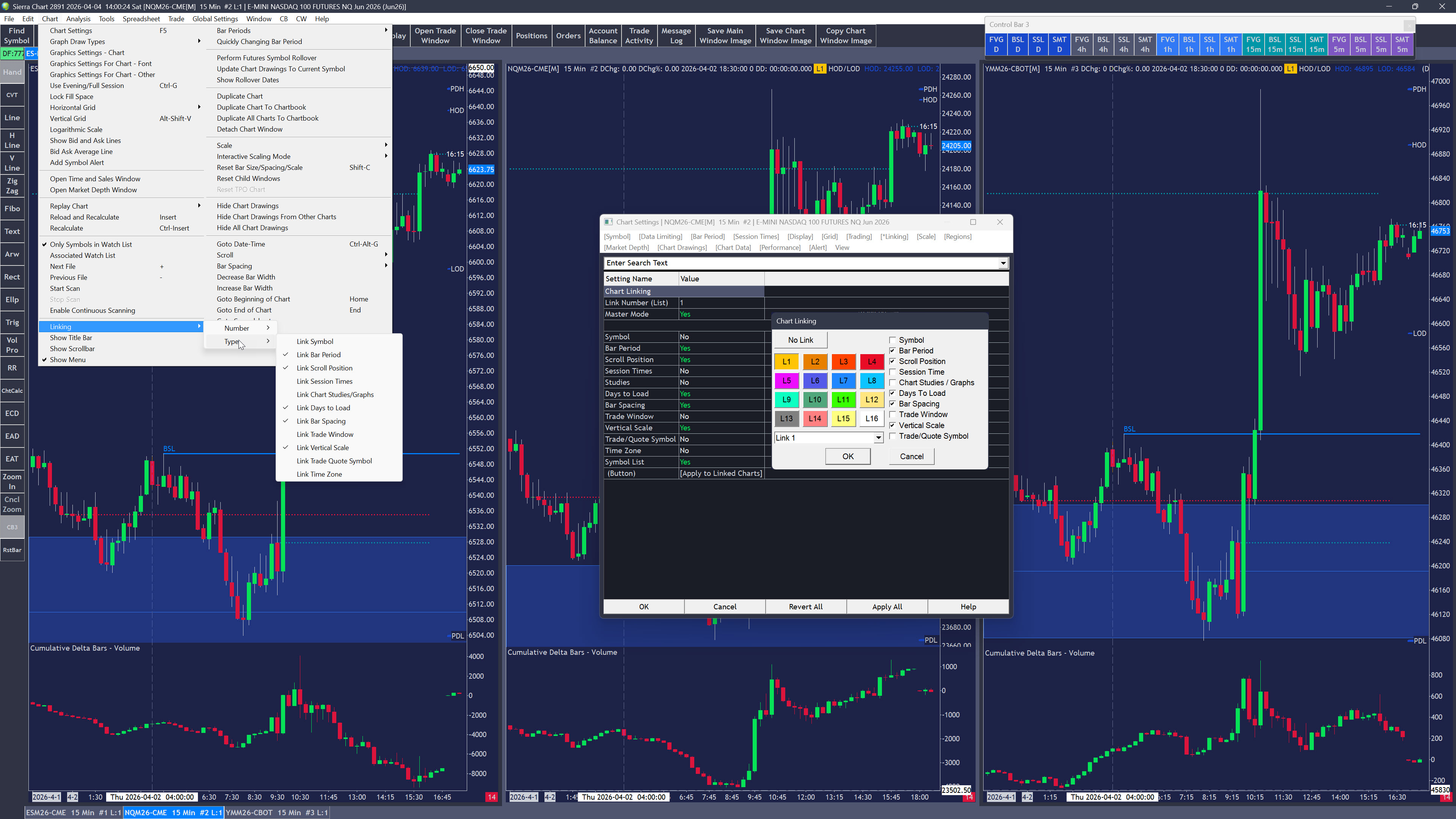 Hello, The chart window linking settings do not offer the same options across platforms (see my screenshot). This is quite confusing, because unless a user goes directly to the Chart Settings window, they won’t even know about some of the linking options. The Symbol List option is missing in Chart > Linking > Type. In the Chart Linking window, both Time Zone and Symbol List are missing. Please take a look at this. Thank you. |