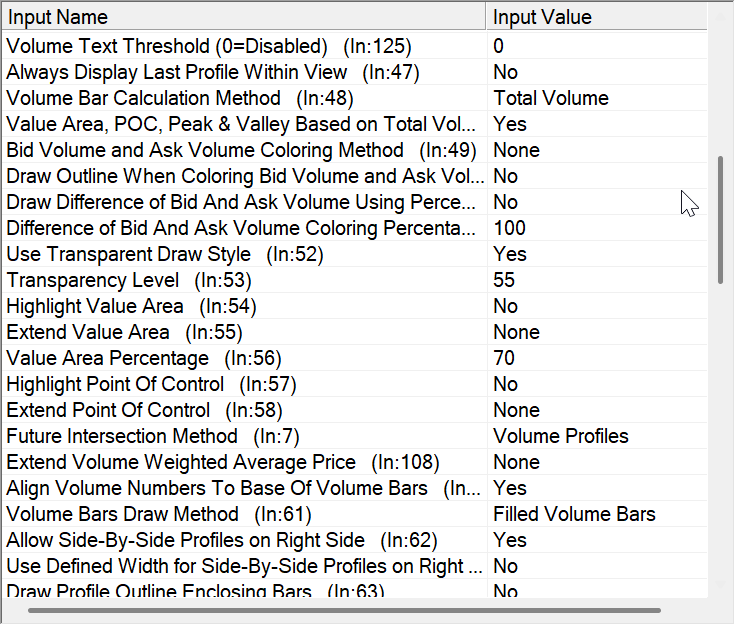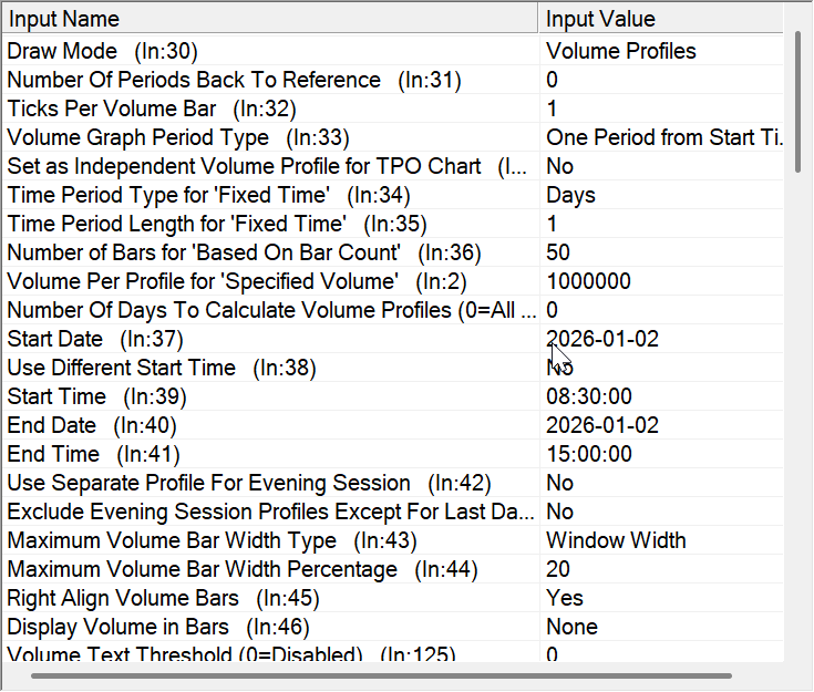 Hi there, I am having an issue where my RTH volume profile is showing the volume profile for the most recent candle during the evening session. Due to the attached file upload limit I have attached only two screenshots of my volume by price study settings, but I believe these contain the settings that pertain to this issue. My chart session times settings are 08:30 - 15:59:59 for the intraday, and 15:00:00 - 08:29:59 for the evening session. Here is a link to the chart image showing the volume profile for the most recent candle in the evening session, which to my understanding should not be there, but something is clearly wrong with my settings - https://www.sierrachart.com/image.php?Image=1775475223274.png Any help would be appreciated. Thank you. |