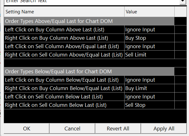 Hello, Is there a way to keep the Chart DOM trading functionality active without the DOM actually being visible on the chart? I want to use the smart pointer-based hotkeys (where the software automatically chooses a limit or stop order based on whether my pointer is above or below the current price). I can use these hotkeys perfectly when the DOM is visible, but I want to keep this functionality while maintaining a clean chart. Currently, there doesn't seem to be a native way to execute smart pointer-based orders without the DOM taking up screen space. Is it possible to add this as a standalone feature, or perhaps add a setting that allows DOM trading to be enabled while keeping the visual DOM columns entirely hidden? |