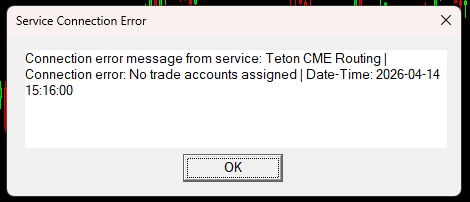 For this error, the first thing to check is the setting for "Global Settings >> Data/Trade Service Settings >> Main Settings >> Clearing Firm". This should be set to "AMP". If not, then change it to "AMP" and select OK. You should be fine after this. If it is already set to "AMP", then the setup process is completely with AMP for your Teton account with them. Talk to them and make sure they have finished the setup for your account. And also check to make sure that they have entered your Sierra Chart Account Name properly for your Teton account, as this is how the accounts are tied together. Your Sierra Chart Account Name is like the following: pr*********24 There is nothing that needs to be done to setup your account from our end. Do not let AMP tell you that there is - they are wrong. If everything checks out correctly and you are still having an issue, then let us know. For the most reliable, advanced, and zero cost futures order routing, use the Teton service: Sierra Chart Teton Futures Order Routing |