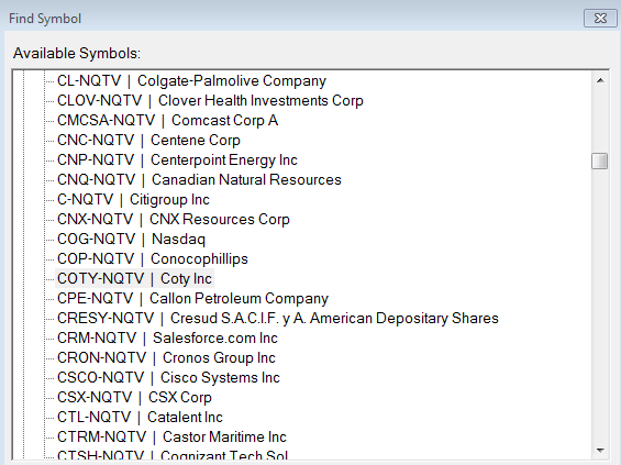 The list of NASDAQ TotalView stocks is not comprehensive. If you want a symbol that is not listed, then you need to type it into the "Selected Symbol" field - such as "ASML-NQTV".