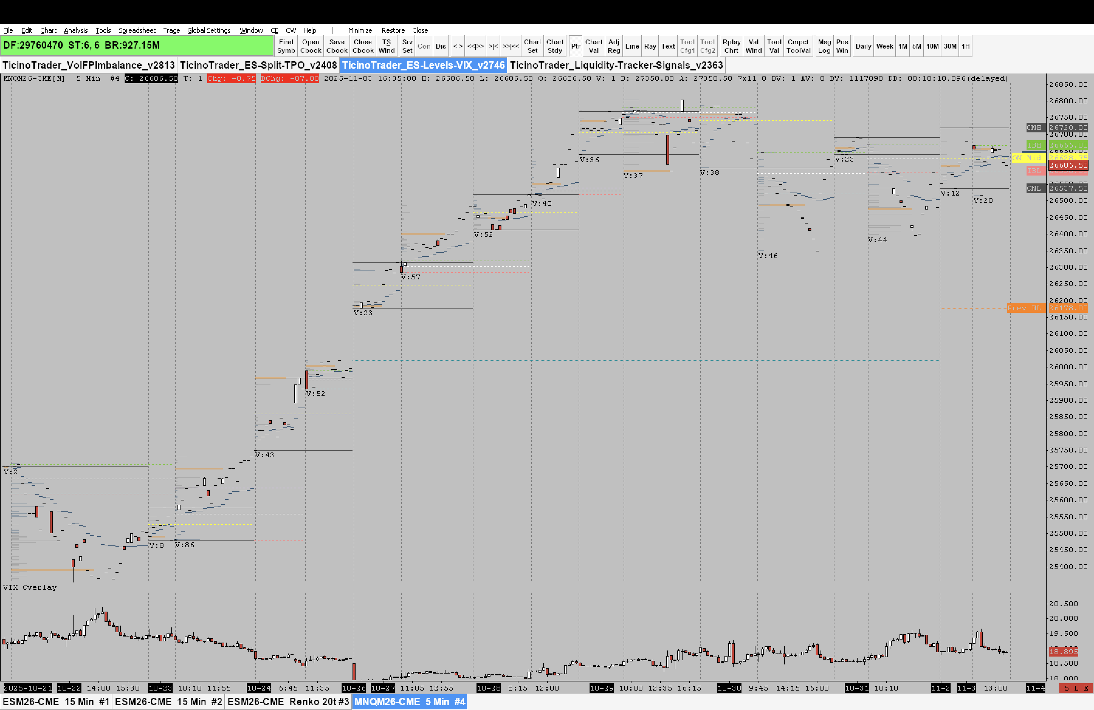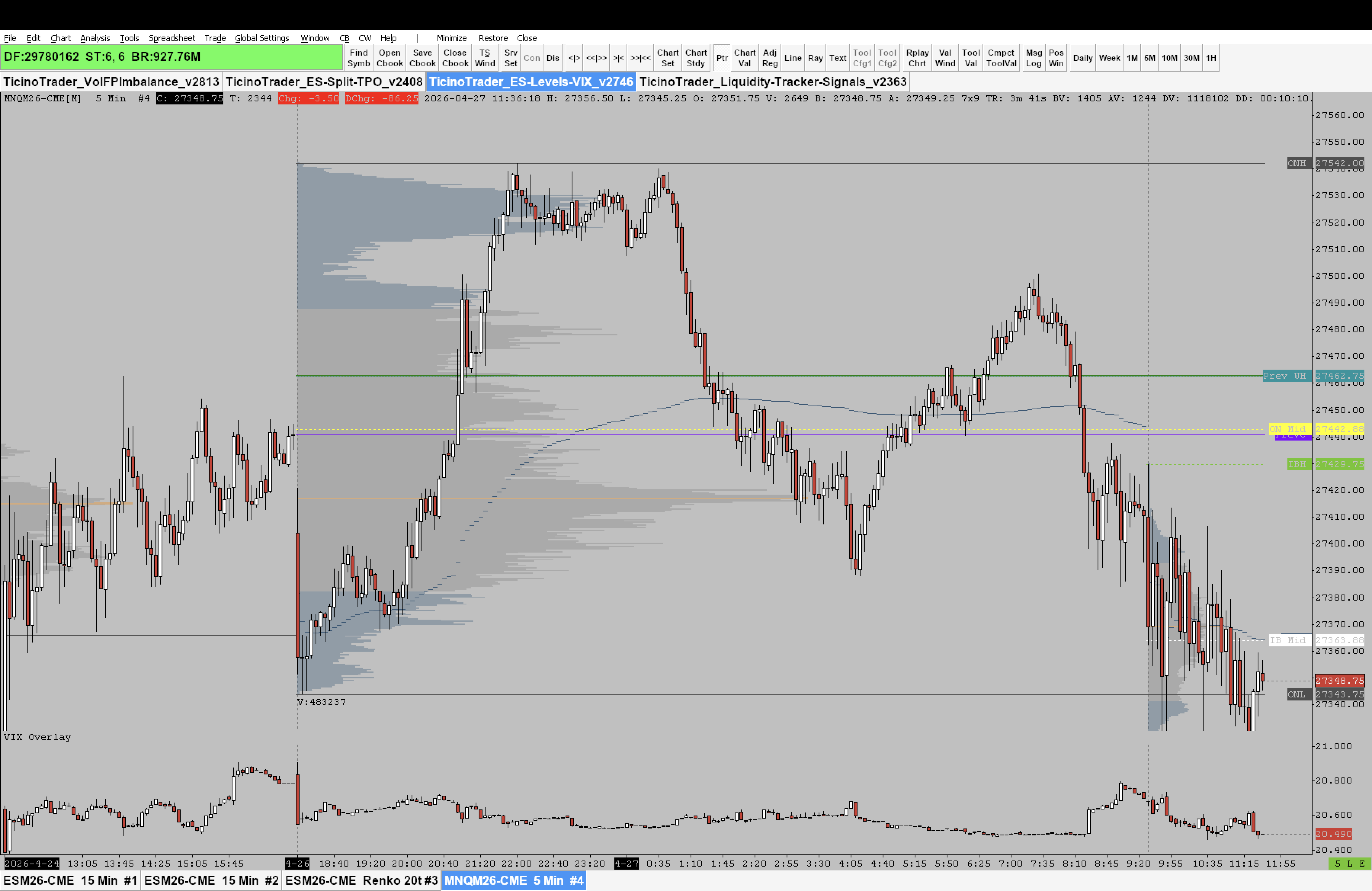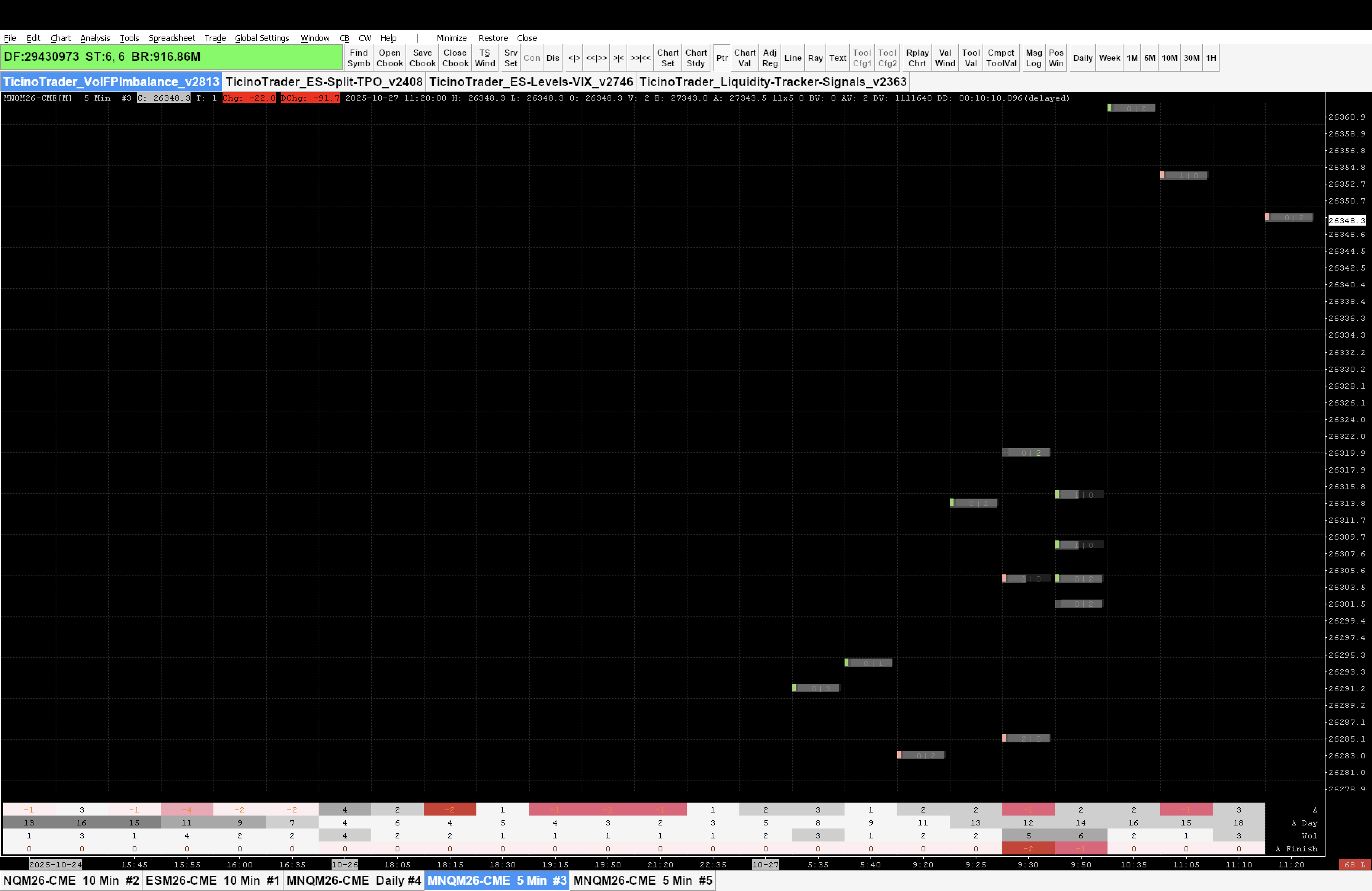 I have a TPO Profile chart with the Market Profile study attached, set up to display TPO POC, Value Area, and Single Prints (with "Extend Singles: Until Future Intersection"). The study draws everything correctly on the chart — POC line, value-area boundaries, and single-print extension lines all visible. When I export this chart via File → Export Data with all study columns selected, the resulting CSV has columns named "Point of Control", "Value Area High Value", "Value Area Low Value" — but every row shows 0.0 for these. There is no column for Single Print extension lines at all, even though they're visible on the chart. What's the correct way to export the actual computed values of TPO POC, Value Area High/Low, and Single Print levels (extension line price levels and the single-print zone high/low boundaries) for each profile period? I want to expose Sierra's chart data and study values to an external Python program in real-time. DTC protocol exposes bar data — does it also expose study outputs (VWAP, IB, POC, VAH, VAL, footprint bid/ask volume, TPO Single Prints)? If not, what's the recommended approach for an external program to read these live as bars complete? Thank you for any guidance. |