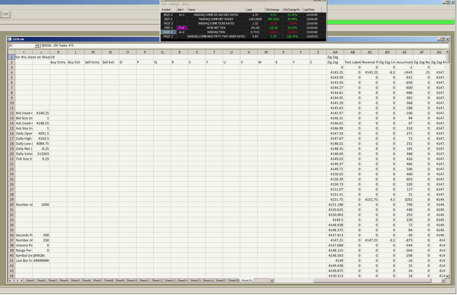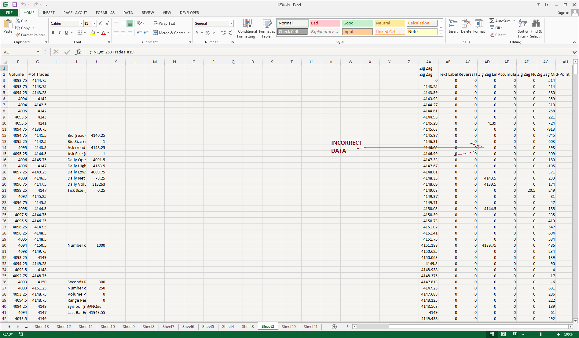 further testing: the issue only happens in Excel not in native spreadsheets. however, I need to use excel. 1. In Excel, the actual data from the ZigZag study is wrong (but correct in native spreadsheet). this is a major concern! 2. I have removed most of the charts from the chartbook, yet both versions still create at least 19 sheets in their spreadsheet. please advise |