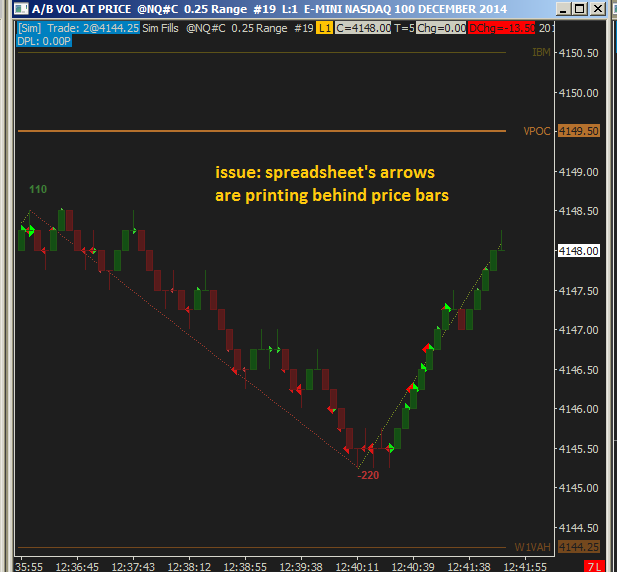 hi, the SG indicators (arrows & triangles) from my spreadsheet study are being printed behind my main price graph, even though 'Draw study underneath main price graph' is off. the chart is a 1-tick range chart and the spreadsheet is the first study in the Studies to Graph list. thanks. |