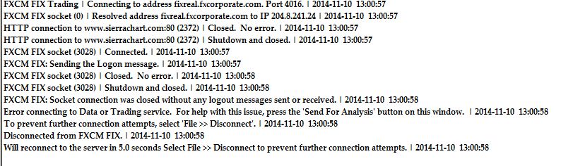 I got the FIX connection info from FXCM as you detailed in your help files (http://www.sierrachart.com/index.php?page=doc/FXCMTrading.php) but cannot connect: here's a copy of the log. I've also sent the message log for analysis. Date Time Of Last Edit: 2014-11-10 07:00:39