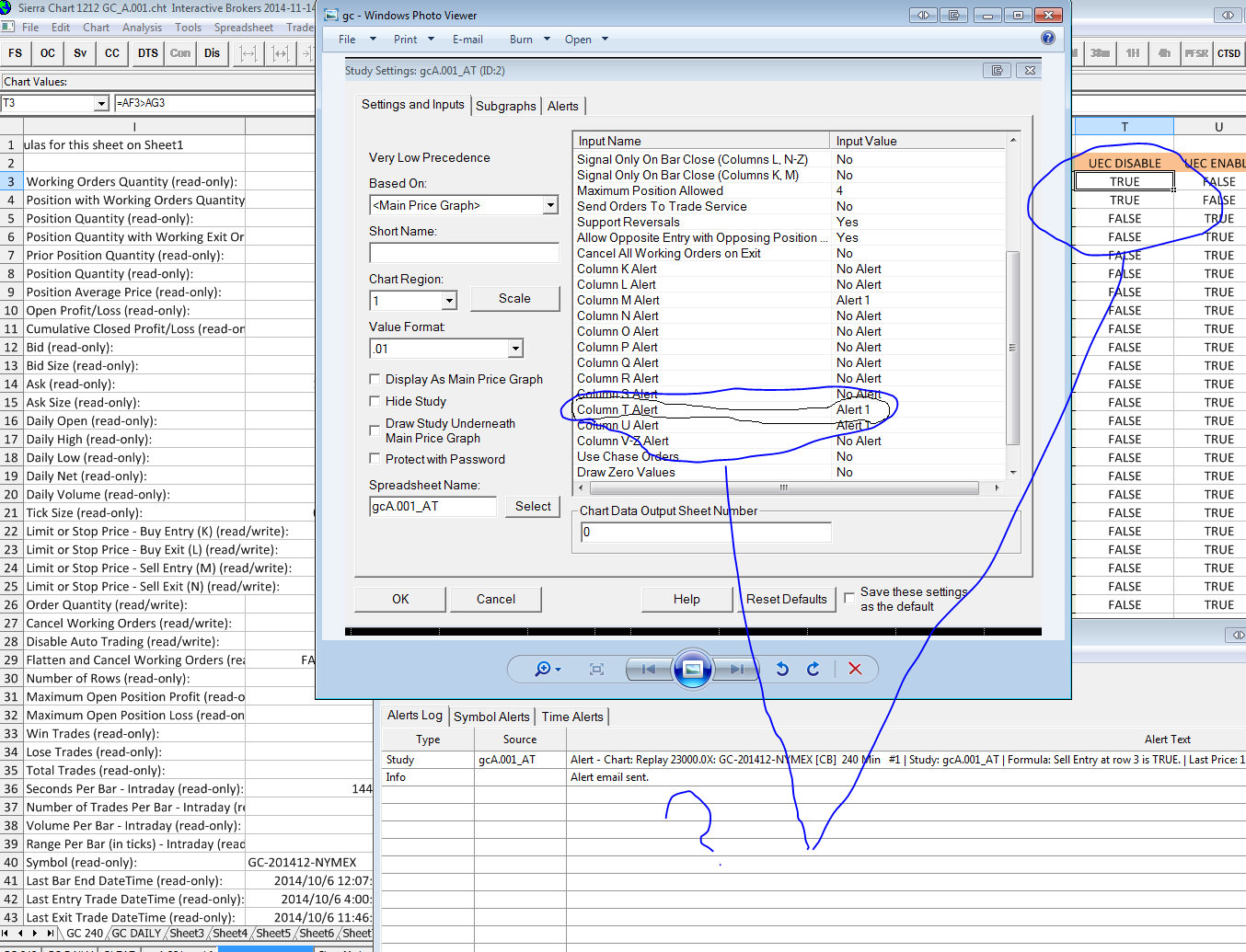Hi, I have a simple condition in a spreadsheet for trading column T that doesn't register as an alert in the log when it flips from FALSE to TRUE. I have the column set to Alert 1 in the spreadsheet settings. Not sure why or what else to try. I've attached a screenshot to help demonstrate. Thanks. Steve. |