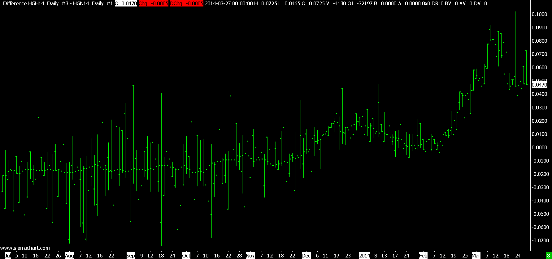 Thanks Corben, but I'm trying to create Daily Spread Charts and I believe the method described is for intraday charts. Sorry, I should have made that clear. |