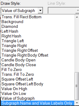 It is: DRAWSTYLE_SUBGRAPH_NAME_AND_VALUES_ONLY Sierra Chart Support - Engineering Level Your definitive source for support. Other responses are from users. Try to keep your questions brief and to the point. Be aware of support policy: https://www.sierrachart.com/index.php?l=PostingInformation.php#GeneralInformation For the most reliable, advanced, and zero cost futures order routing, *change* to the Teton service: Sierra Chart Teton Futures Order Routing |