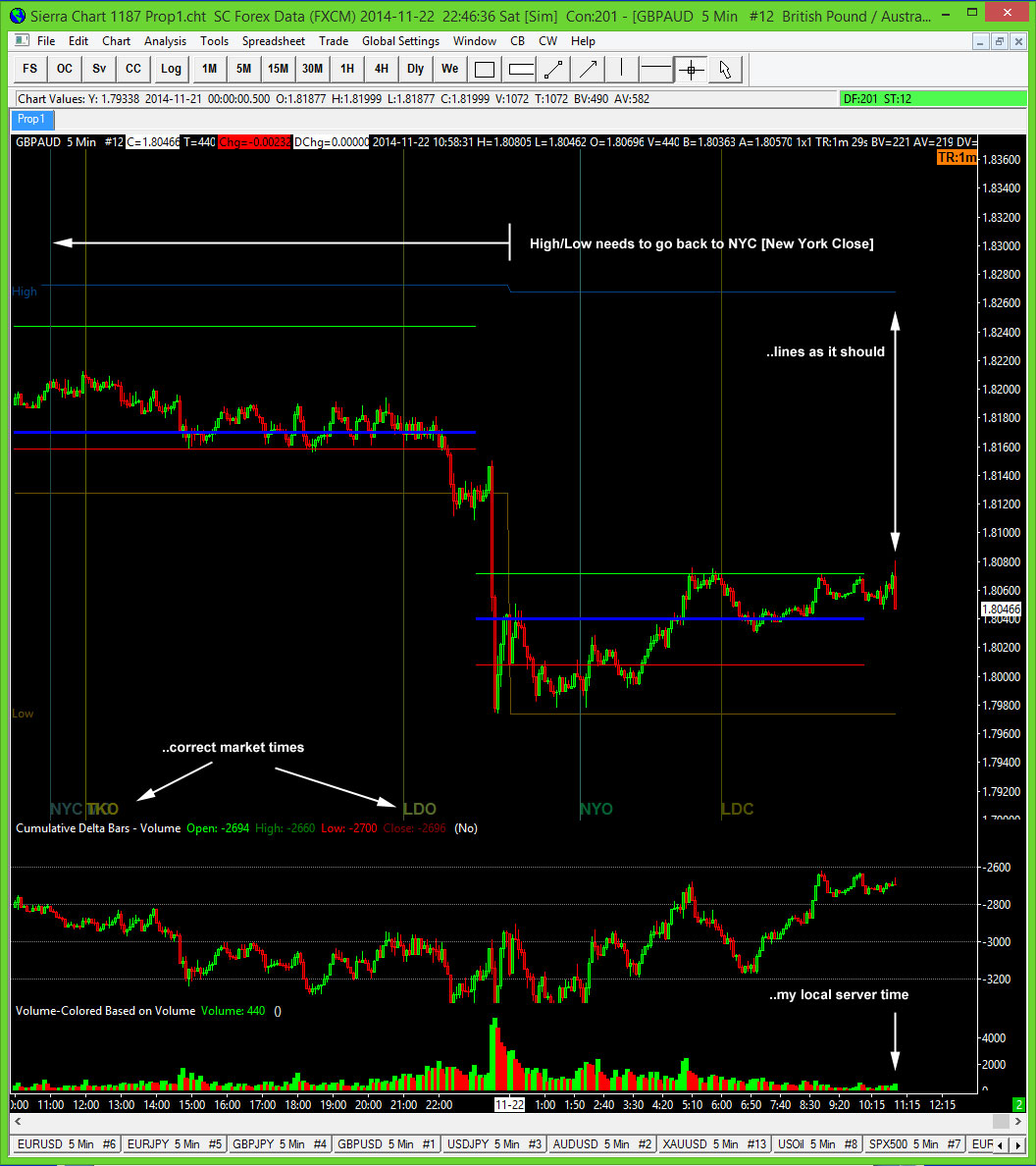 Hi there, As per attached I am trying to align my 'Studies' Daily OHLC Lines with my local server time ie start of day NYC [Market Open]. I have used Displacement in Studies however that then offsets it from last candle and does not give the accurate 'reading' [as it is displaced]. Hopefully your answer will apply to the Volume Value Area Lines as well, which has the same problem]. I have read instruction re scrolling forward, however that does not seem to apply yo this question. Thanks in advance Rgds, Mark |
