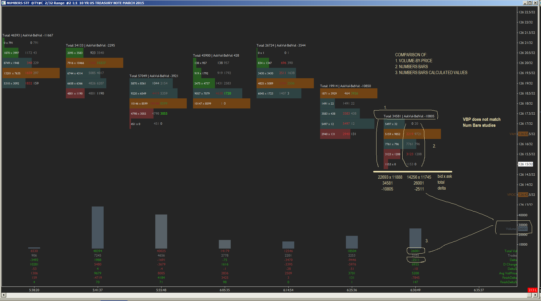 Comparison of volume studies: Volume By Price and Numbers Bars