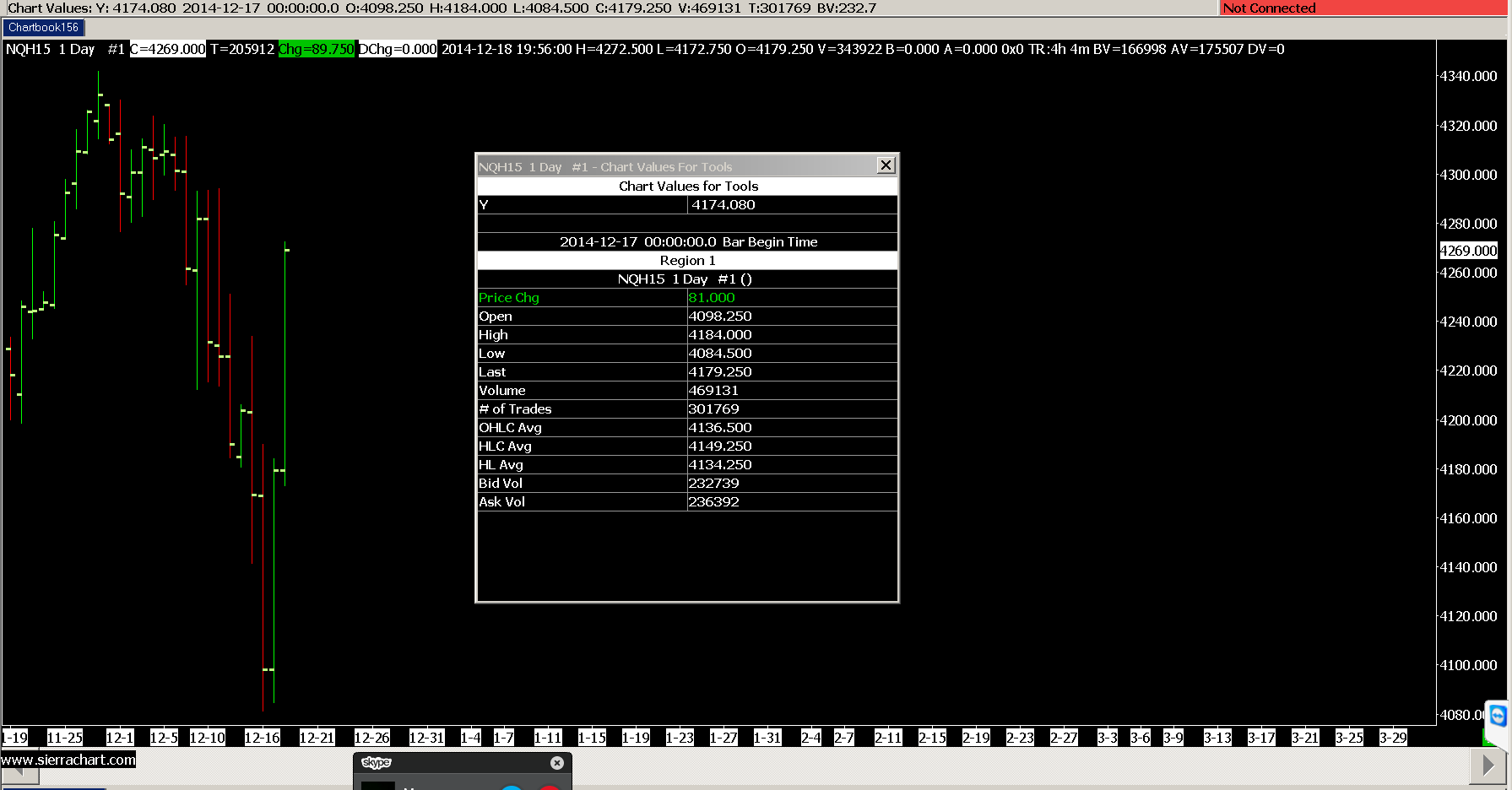 How do you know this and how much less are you seeing? These are the volumes that we see for NQH15 12-18: 349808 12-17: 465449 Sometimes there is some amount of packet loss which can result in a very small percentage of less volume, but it is not significant. Sierra Chart Support - Engineering Level Your definitive source for support. Other responses are from users. Try to keep your questions brief and to the point. Be aware of support policy: https://www.sierrachart.com/index.php?l=PostingInformation.php#GeneralInformation For the most reliable, advanced, and zero cost futures order routing, *change* to the Teton service: Sierra Chart Teton Futures Order Routing |