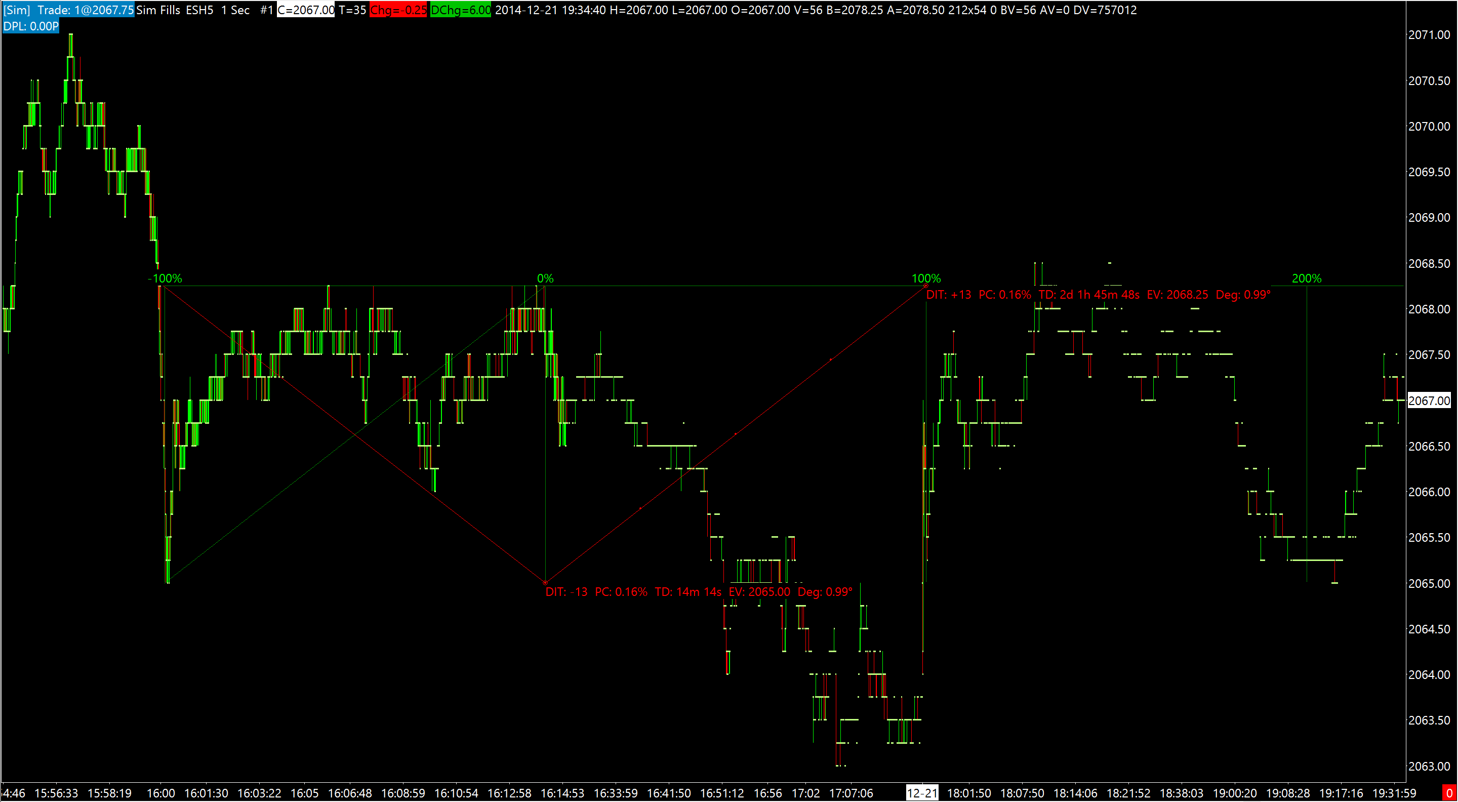 -100% to 0% should equal 0% to +100% but the duration of the former is 14m 14s, and the duration of the latter is 2d 45m 48s This chart is on ES, 1 second |