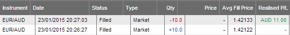I trade 10 lots, which equals 1 standard lot (100 000 currency units) in LMAX, which means 1 pip equals 10 currency units. The screen shot below shows a trade I made in EUR/AUD. I lost 1.8 pips (-0.00018), but the DPL shows -0.00180, which is wrong. http://www.sierrachart.com/image.php?l=1422037833313.png Attached is a similar trade in LMAX Web Trader, which is correct. I might be wrong, perhaps I haven't understood what you are really measuring with the DPL. Cheers |